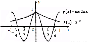 【答案】分析:在同一坐标系中,作出f(x)=2-|x|,g(x)=cos2πx的图象,根据图形的对称性,可得结论.