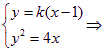 抛物线y2=4x的焦点为(1,0),设直线方程为y=k(x-1).