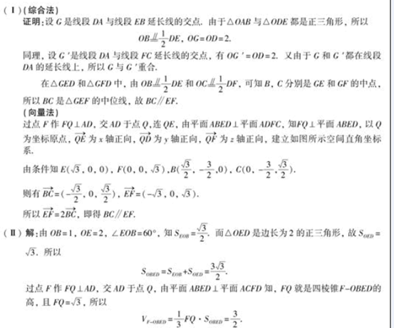 (本小题满分12分)如图,为多面体,平面与平面垂直,点在线段上,,△,△,△都是正三角形。(Ⅰ)证明直线∥;(2)求棱锥F—OBED的体积.