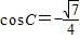 【答案】分析:(1)利用二倍角公式将已知等式化简;将得到的式子平方,利用三角函数的平方关系求出sinC.