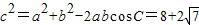 (2)利用求出的三角函数的值将角C的范围缩小,求出C的余弦;将已知等式配方求出边a,b;利用余弦定理求出c