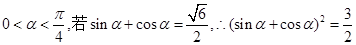 点评:解决的关键是将已知的表达式变形得到正切值,然后借助于条件得到结论,属于基础题。
