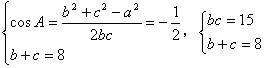 已知:在△ABC中,A=120°,a=7,b+c=8,