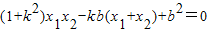 ∴(kx1-b)(kx2-b)+x1x2=0,即