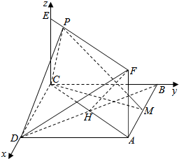 由$\left\{\begin{array}{l}{\overrightarrow{{n}_{1}}•\overrightarrow{CP}=0}\\{\overrightarrow{{n}_{1}}•\overrightarrow{CD}=0}\end{array}\right.$即为$\left\{\begin{array}{l}{mx+nx+k=0}\\{2m=0}\end{array}\right.$,可取$\overrightarrow{{n}_{1}}$=(0,1,-x),