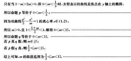 已知命题方程表示焦点在轴上的椭圆;命题双曲线的离心率,若、有且只有一个为真命题,求实数的取值范围.