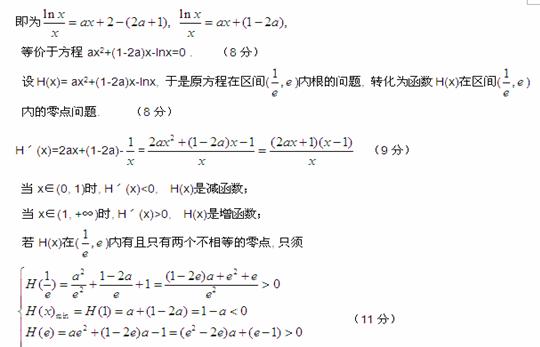 ∵函数h(x)存在单调递增区间, ∴hˊ(x) > 0有解, 即不等式ax2+2x-1>0有解. (2分)