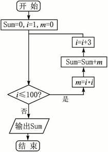 算法分析:需要一个累加变量、一个计数变量和一个数值平方的变量,将累加变量的初始值设为0,计数变量的值每次加3,从1到100.