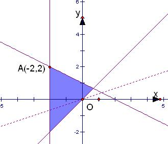 在坐标系中画出可行域三角形,
