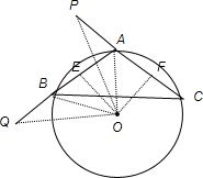 分析:先作△ABC的外接圆⊙O,并作OE⊥AB于E,OF⊥AC于F,连接OP、OQ、OB、OA,证出BE=AF,OE=OF,再证Rt△OPF≌Rt△OQE,得到∠P=∠Q即可得到答案.