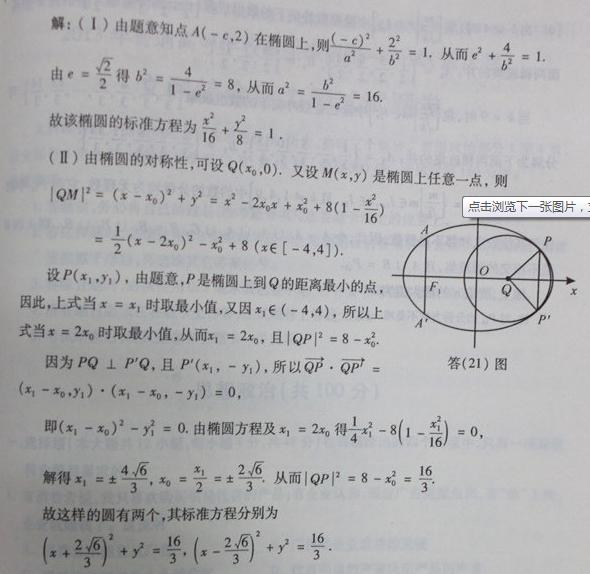 如题(21)图,椭圆的中心为原点