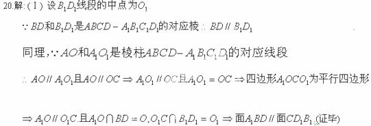 (Ⅰ) 证明: A1BD // 平面CD1B1; (Ⅱ) 求三棱柱ABD-A1B1D1的体积. ![]()