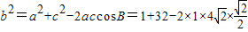 点评:本题考查三角形的面积公式:三角形的面积等于任意两边与它们夹角正弦的一半、考查利用三角形的余弦定理求边长.