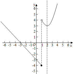 16.作出函数f(x)=$\left\{\begin{array}{l}{-x-3}&{(x≤1)}\\{{(x-2)}^{2}+3}&{(x>1)}\end{array}\right.$的图象,并指出函数的单调区间.分析 根据分段函数画出图象即可,并由图象得到函数的单调区间.