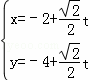 ,消去参数t得:直线L的方程为y+4=x+2即y=x﹣2(3分)