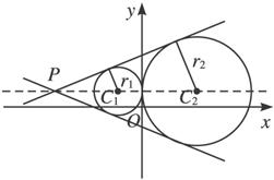 两圆外切如下图,可知|PC1|=|C1C2|=3.