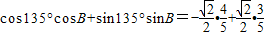cosC=cos(180°-A-B)=cos(135°-B)(3分)