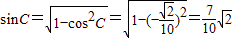 在△ABC中,已知A=45°,(Ⅰ)求cosC的值;