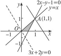 解析:画出可行域如图,直线2x-y-1=0与y=x的交点为A(1,1).
