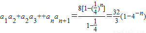【答案】分析:首先根据a2和a5求出公比q,根据数列{anan+1}每项的特点发现仍是等比数列,且首项是a1a2=8,公比为