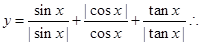x在第一象限时,则可知都为正数,函数值为3,当x在第二象限时,余弦和正切为负数,其余为正数,则可知函数值为-1,当x为第三象限时,则可知,正切为正,其余为负数,可知为1,那么当x在第四象限时,可知结论为-1,综上可知,函数的值域为