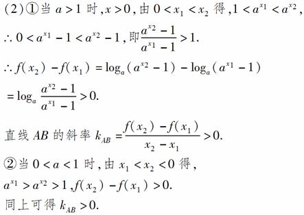 (2)设A(x1,y1)、B(x2,y2)(x1<x2)是f(x)图象上两点,证明直线AB的斜率大于0.