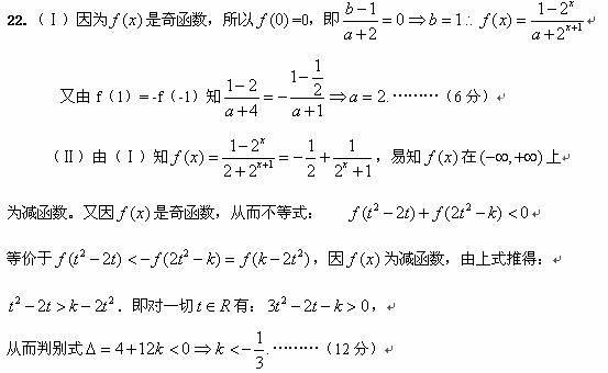 (本题14分)已知定义域为的函数是奇函数。