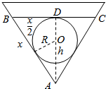 ∴球O的半径为R=OD=$\frac{1}{3}$AD=$\frac{1}{3}$h.