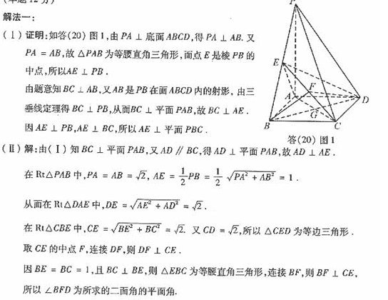 (本题满分12分)如图,在四棱锥P—ABCD中,底面ABCD为正方形,PD⊥平面ABCD,且PD=AB=2,E是PB的中点,F是AD的中点.