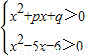 ∵不等式x2+px+q<0的解集为{x|1<x<2},