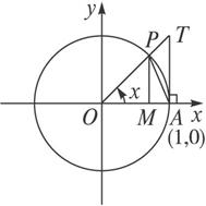 (2)如图,设角α的终边与单位圆交于点P,单位圆与x轴的正半轴的交点为A,过A点作圆的切线交OP的延长线于点T,连结AP,则sinx=MP,tanx=AT.