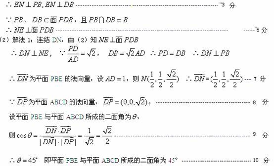 ,求平面PBE与平面ABCD所成的二面角的大小.