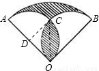 【答案】分析:设OA的中点是D,则∠CDO=90°,这样就可以求出弧OC与弦OC围成的弓形的面积,从而可求出两个圆的弧OC围成的阴影部分的面积,用扇形OAB的面积减去两个半圆的面积,加上两个弧OC围成的面积的2倍就是阴影部分的面积,最后根据几何概型的概率公式解之即可.