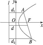 解:设准线为l,点A、B到准线l的距离为d1、d2,AB中点到l的距离为d,