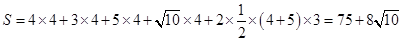 试题分析:由三视图可知,此几何体为一个底面为直角梯形的四棱柱,所以该几何体的表面积为