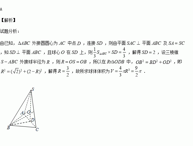 在体积为的三棱锥中,,且平面平面,若该三棱锥的四个顶点都在同一球面上,则该球的体积是( )