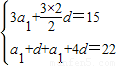 解答:解:(1)∵等差数列{an}中,S3=15,a2+a5=22,