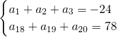 解答:由a1+a2+a3=-24,a18+a19+a20=78,