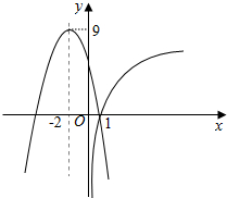 作出函数$y=lo{g}_{2}x,y=-{x}^{2}-4x+5$的图象如图:![]()