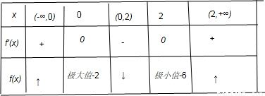 ∴f(x)的极大值为f(0)=-2,极小值为f(2)=-6;