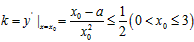 (2)若以函数y=f(x)-x(0<x≤3)图像上任意一点P(x0,y0)为切点的切线的斜率恒成立,求实数a的最小值。