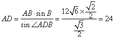 由已知得∠ADB=60°,B=45°,
