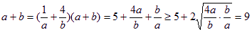 即a=3,b=6时a+b有最小値为9,此时所求直线方程为2x+y-6=0。
