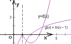 因为函数g(x)=ln(x-1)上所有的点都在x=1右侧,故当x≤1时,两图象没有公式点