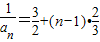 【答案】分析:利用“取倒数法”和等差数列的通项公式即可得出.