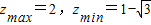 【答案】分析:由A,B及△ABC为正三角形可得,可求C的坐标,然后把三角形的各顶点代入可求z的值,进而判断最大与最小值,即可求解范围