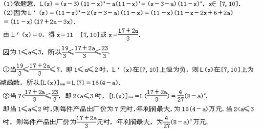 ij»¯¹¤³§Éú²úijÖÖ²úÆ·£¬Ã¿¼þ²úÆ·µÄÉú²ú³É±¾ÊÇ3Ôª£¬¸ù¾ÝÊг¡µ÷²é£¬Ô¤¼ÆÃ¿¼þ²úÆ·µÄ³ö³§¼ÛΪxÔª(7¡Üx¡Ü10)ʱ£¬Ò»ÄêµÄ²úÁ¿Îª(11£x)2Íò¼þ£»Èô¸ÃÆóÒµËùÉú²úµÄ²úÆ·È«²¿ÏúÊÛ£¬Ôò³Æ¸ÃÆóÒµÕý³£Éú²ú£»µ«ÎªÁ˱£»¤»·¾³£¬ÓÃÓÚÎÛȾÖÎÀíµÄ·ÑÓÃÓë²úÁ¿³ÉÕý±È£¬±ÈÀýϵÊýΪ³£Êýa(1¡Üa¡Ü3).
