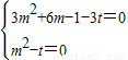 整理得(3m2+6m-1-3t)k2+m2-t=0对任意的k恒成立,