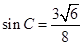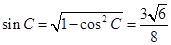 试题分析:(1)余弦定理的应用.(2)通过余弦定理求出角C的余弦值,再求出角C的正弦值.另外也可以先求出角B的正弦值,再用正弦定理求出角C的正弦值.