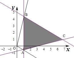 作出不等式组对应的平面区域如图(阴影部分ABC):
